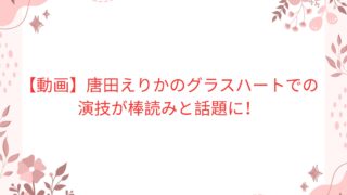 未分類 【動画】唐田えりかのグラスハートでの演技が棒読みと話題に! 唐田えりかさんのグラスハートでの演技が棒読みといわれていますが本当なのでしょうか?今回は動画とともに解説していきます! 2025.09.12 未分類