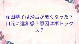 未分類 深田恭子は滑舌が悪くなった?口元に違和感?原因はボトックス? 深田恭子さんの滑舌が悪くなったや、口元の動きが固いといった声が上がっています。中にはボトックスが原因という言う意見もあれば、うつ病だという意見もあります。真相はどうなのでしょうか? 2025.09.13 未分類